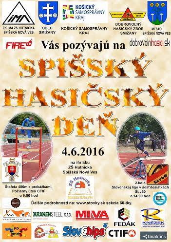 Spišský hasičský deň je súťaž pre mladých hasičov. Skladá sa z dvoch častí a to zo súťaží CTIF a Slovenskej ligy v behu na 60 m s prekážkami. Program podujatia začína v piatok doobedu prípravou ihriska a súťažných dráh. Poobede sa začína otvorený tréning pre všetky súťažné disciplíny. Náš ZK má veľa skúseností a radi sa podelíme so svojími znalosťami, aby sme pozdvihli hasičský šport detí. V sobotu ráno o 9,00 začína časť súťaže CTIF o 14,00 súťaž jednotlivcov v šesťdesiatkach. Po ukončení šesťdesiatok by sme mali s hosťami navštíviť ZOO v Spišskej Novej Vsi. Večer pokračujeme spoločným pripomenutím si 15 ročnej spolupráce s IMA. V nedeľu ráno upratanie priestorov ihriska.