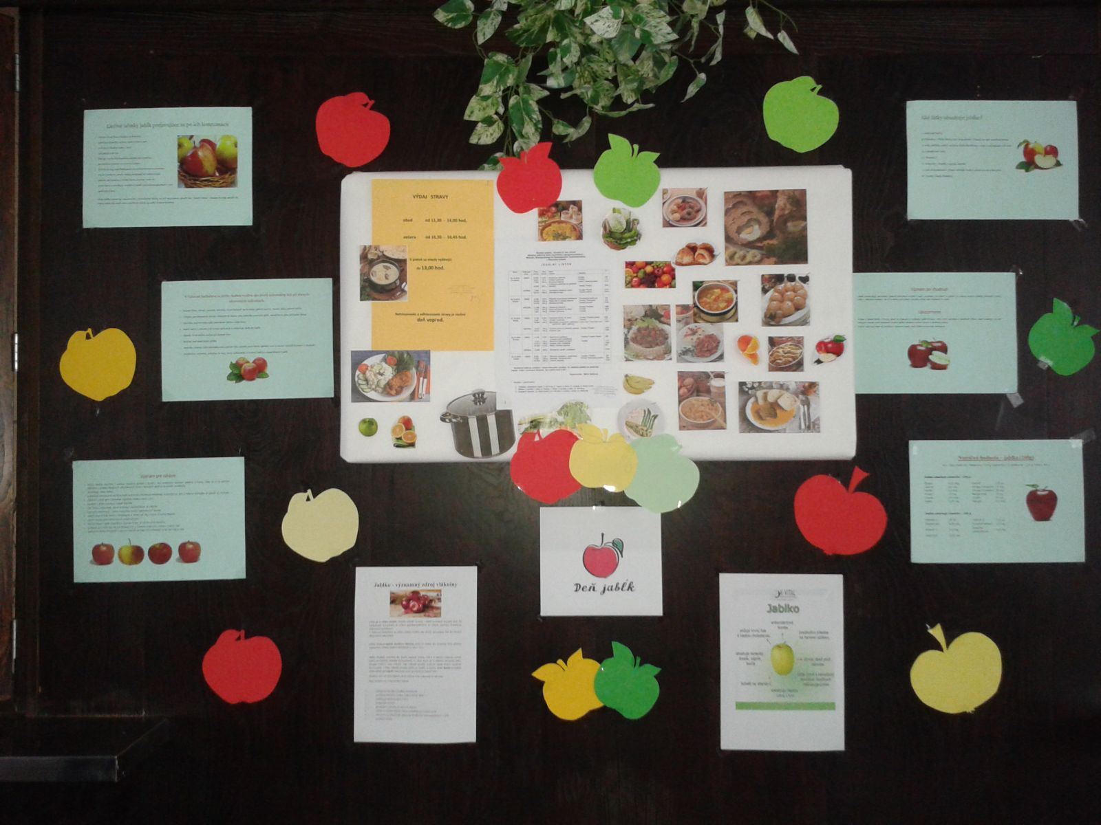 Po dohode s vedúcou jedálne, bol aj obed prispôsobený tomuto dňu. Podávala sa jablkovo tvarohová žemľovka a každý stravník dostal k obedu jablkovú výživu. V školskej jedálni si stravníci mohli prečítať informácie o vplyve konzumácie jablka na ľudský organizmus a jeho nutričnej hodnote. Za prípravu obeda ďakujeme našim šikovným tetám kuchárkam.